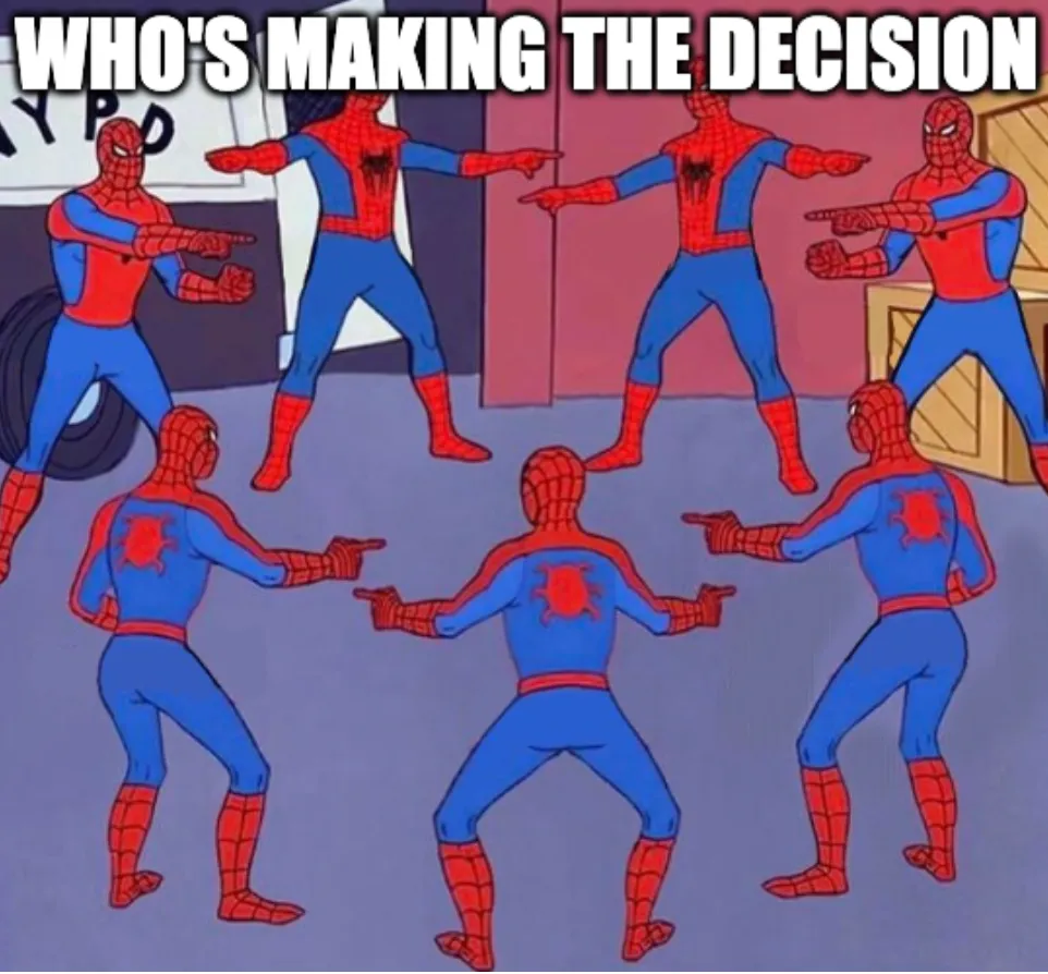 - A lack of process - How is the decision even made? How do we decide who to involve in making the decision? Where is this communication taking place?