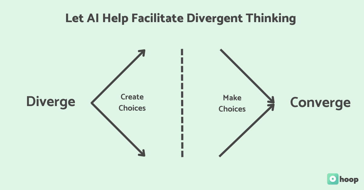 - AI can help you go BIG and generate a large list of ideas, some of which are bound to be different from the three or five options you might come up with on your own.
