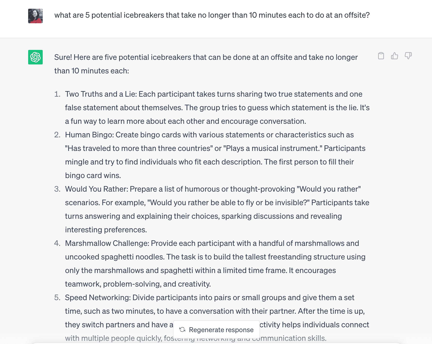 From all of this, we learned a few things about leveraging chatGPT to plan an offsite, and to help guide a decision-making process more broadly.