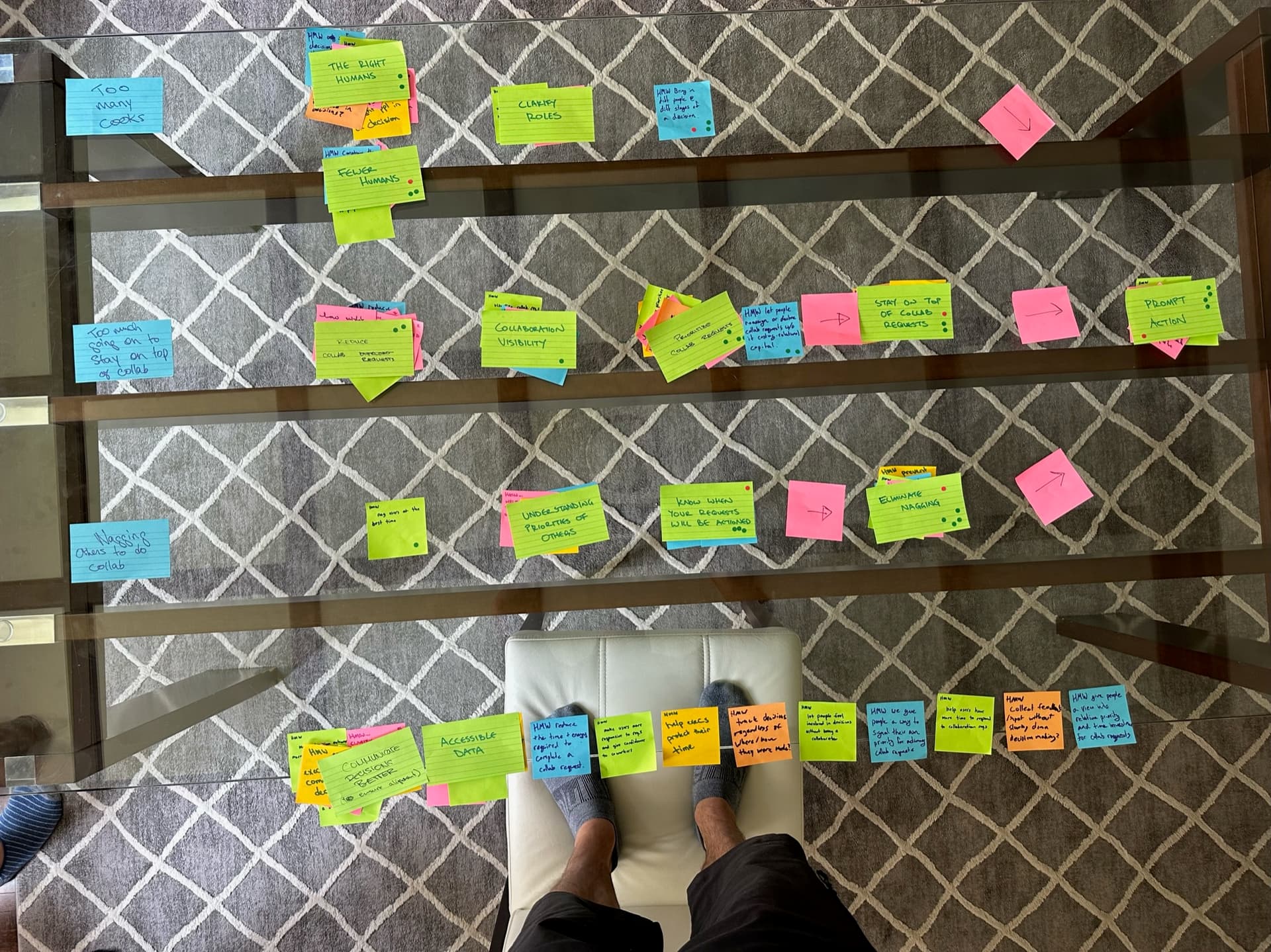 Every session must have a scribe! Ideally this is not the session leader. The scribe is responsible for capturing an artifact for the session. This might be a page of notes with a summary up top. Or if it’s a creative session, there might be some other kind of artifact, like an arrangement of sticky notes or drawings. In those cases, notes might include photos or even video from the session, whatever makes sense. But the key is, there has to be some documented expression of the session that you can refer back to later.